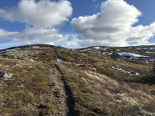 Jeg kjørte ned til den store p-plassen til alpinsenteret på Gålå og parkerte her. Tuslet nedover retning toppen og fant snart den merkede stien som skulle svinge seg oppover langs alpinbakkene. Her var det til tider ganske vanskelig å gå pga anleggsarbeider i hele området! Først da jeg kom på nordsiden av fjellet begynte det å se ut som en fjelltur, og herfra og opp var det veldig fint å gå. Valsfjellet har to toppunkter som er omtrent like høye. Begge toppene er markert med hver sin store varde og ligger ikke så langt fra hverandre. Vid utsikt fra begge toppene. Jeg valgte en annen vei tilbake for å slippe å gå i området rundt alpinbakken. Alternativet på returen var mye flottere!