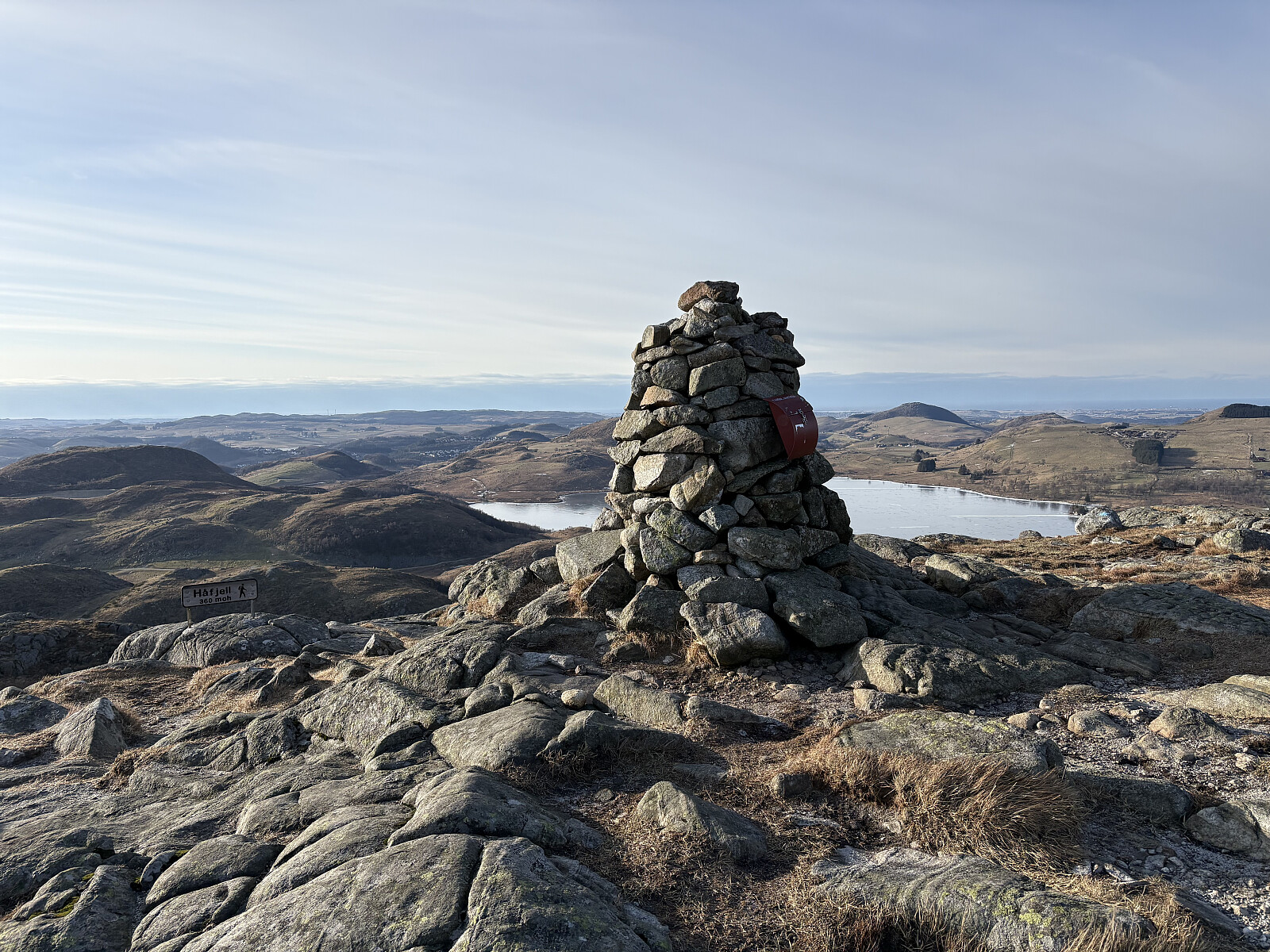 Turen fortsatte videre nordover og snart kom jeg meg endelig ned igjen på vei/sti. Denne kunne jeg følge helt opp til toppen på Håfjellet. Sterk vind på toppen gjorde oppholdet kortvarig. Returen gikk langs sti/vei via Ytre Lima gard tilbake igjen til bilen.