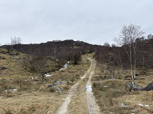 Jeg kjørte inn til Lomeland og parkerte i en lomme langs grusveien mellom Kjertåsen og Tofjellet. Først fulgte jeg en gammel setervei inn til foten av Kjertåsen, deretter kunne ryggen følges opp til toppen. Det var en svak sti som jeg gikk langs hele ruta opp til toppen.