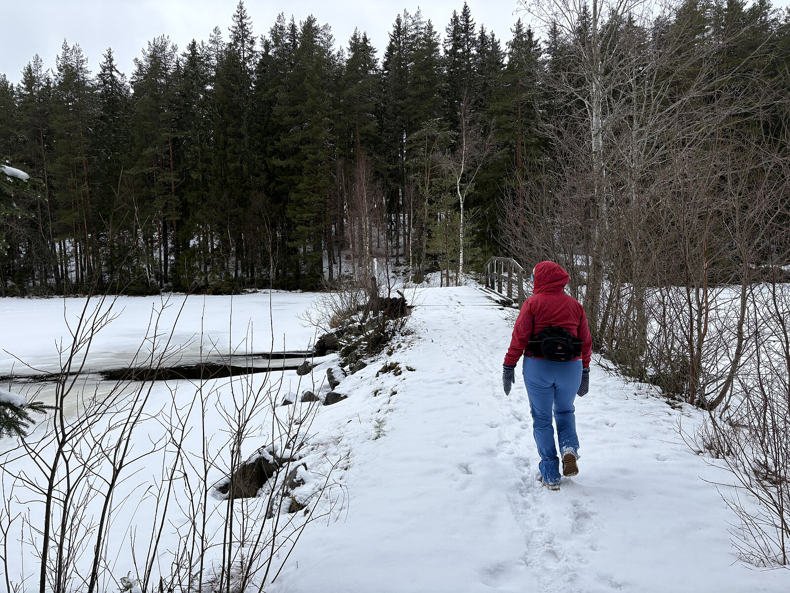 Vi parkerte ved Heiavannet og gikk den vanlige runden rundt vannet med en avstikker oppom Brattåsen. Det var en del snø men denne runden blir stort sett alltid sporet opp av turglade mennesker. Cecilie var med.