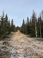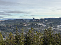 Neste stopp var Lauvåshaugen. For å unngå å kjøre nesten helt til topps valgte jeg å parkere i en lomme ved innkjøringen til hyttefeltet NV for toppen. Herfra gikk jeg langs veien et stykke og etter hvert på god sti på kanten langs hyttefeltet. Like før selve toppkollen kom jeg inn på veien igjen som jeg fulgte opp til den øverste hytta. Herfra ble det bushing de siste hundre meterne opp til toppen. Noe utsikt mellom trærne, men egentlig en ganske stusselig topp!