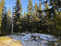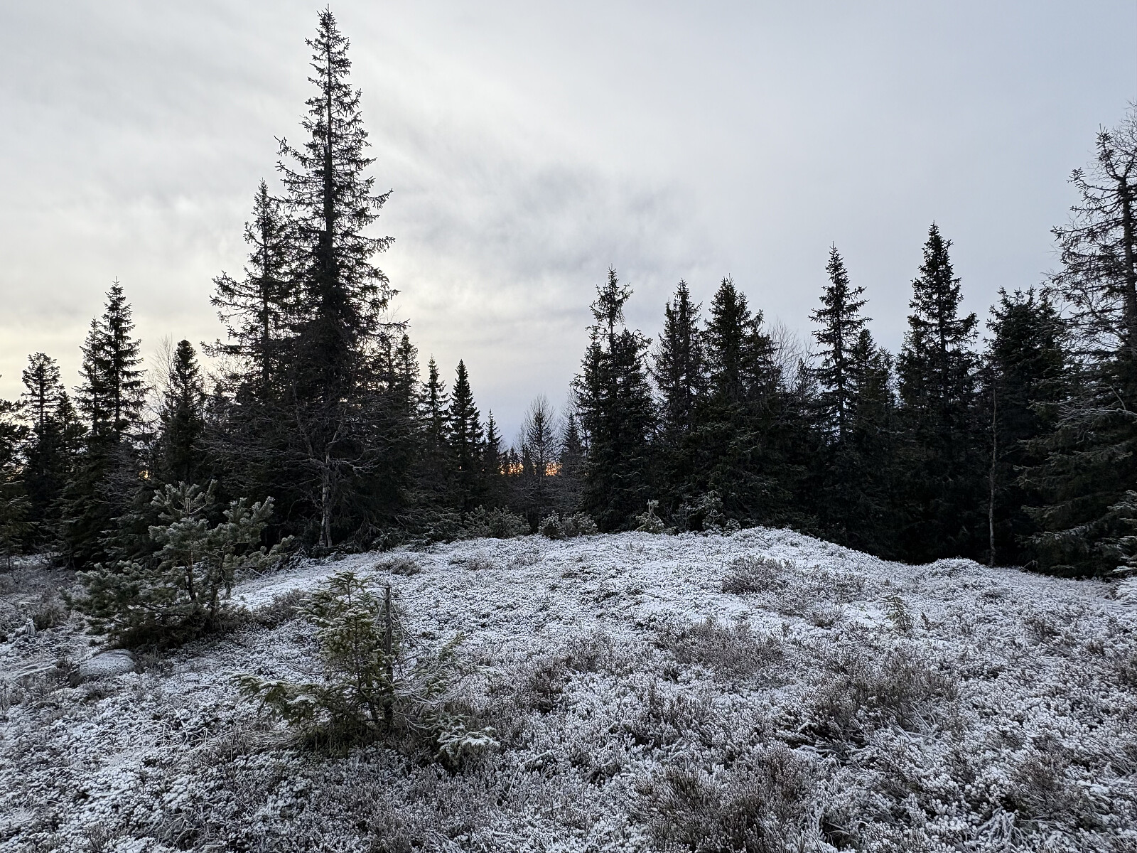 For å få til en liten rundtur gikk jeg over til Tjuvdalshøgda, før jeg stort sett fulgte høyspenttraseen tilbake til veien. Heller ikke denne toppen kunne imponere med fin utsikt, og i tillegg var den utpreget flat og uten noe naturlig toppunkt.