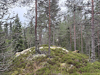 Jeg kom nordfra og kjørte mange kilometer på skogsbilveier (2 betalinger) før jeg til slutt parkerte rett nord for toppen. Herfra ble det bushing opp til toppen. Litt spredt sikt mellom trærne underveis, men ingen vidstrakt utsikt. Selve toppunktet var markert med en liten steinvarde.