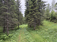 Jeg kjørte opp til snuplassen NØ for Vudduåsen og parkerte der. Fra snuplassen går det en sti/kjerrevei retning Vudduåsen som jeg fulgte frem til selve toppryggen. Turen oppover ryggen var temmelig gjengrodd av ungtrær og det var til tider vanskelig å ta seg frem. Like før toppen åpnet det seg opp med god utsikt både mot øst og vest. Selve toppunktet lå inne i krattet, herfra var det lite fremkommelig og null utsikt!