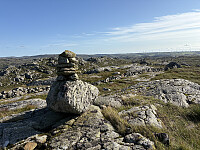 Jeg fortsatte turen langs fjellryggen mot SV frem til Ristølnuten. Helt upåklagelig utsikt også her, hvor det i tillegg var satt opp en artig varde. Jeg forsøkte meg på en direkte linje ned igjen til Bjørnalia, men det var like ulendt og vanskelig her som der jeg hadde gått opp. Jeg var litt lunken til å gå gjennom den steinete Urdådalen tilbake igjen også, derfor bestemte jeg meg for å følge veien nord for Sælandsfjellet >>>