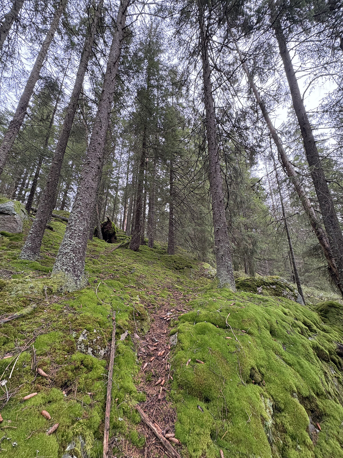 Jeg kom nordfra og kjørte mange kilometer på skogsbilveier (2 betalinger) før jeg til slutt parkerte rett nord for toppen. Herfra ble det bushing opp til toppen. Litt spredt sikt mellom trærne underveis, men ingen vidstrakt utsikt. Selve toppunktet var markert med en liten steinvarde.