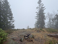 Parkerte ved Vestmarksetra og syklet opp til Storivollen. Herfra fottur på gode stier oppom Ramsås og ned til utsiktspunktet som denne dagen like gjerne kunne vært midt inne i granskogen pga tett tåke. Like ved den idylliske putten mellom toppen og utsiktspunktet ble det kjentmannspost og matpause. Tilbake ved sykkelen fortsatte jeg nordover til Svartvannshytta. Her tok jeg først turen opp til toppen med det spenstige navnet "Vest for Puttmyrene" som kledde navnet helt greit. Deretter en avstikker oppom setertuftene på Hornivollen hvor dagens andre kjentmannspost befant seg før jeg kunne glede meg over en lett sykkeltur tilbake til bilen:)