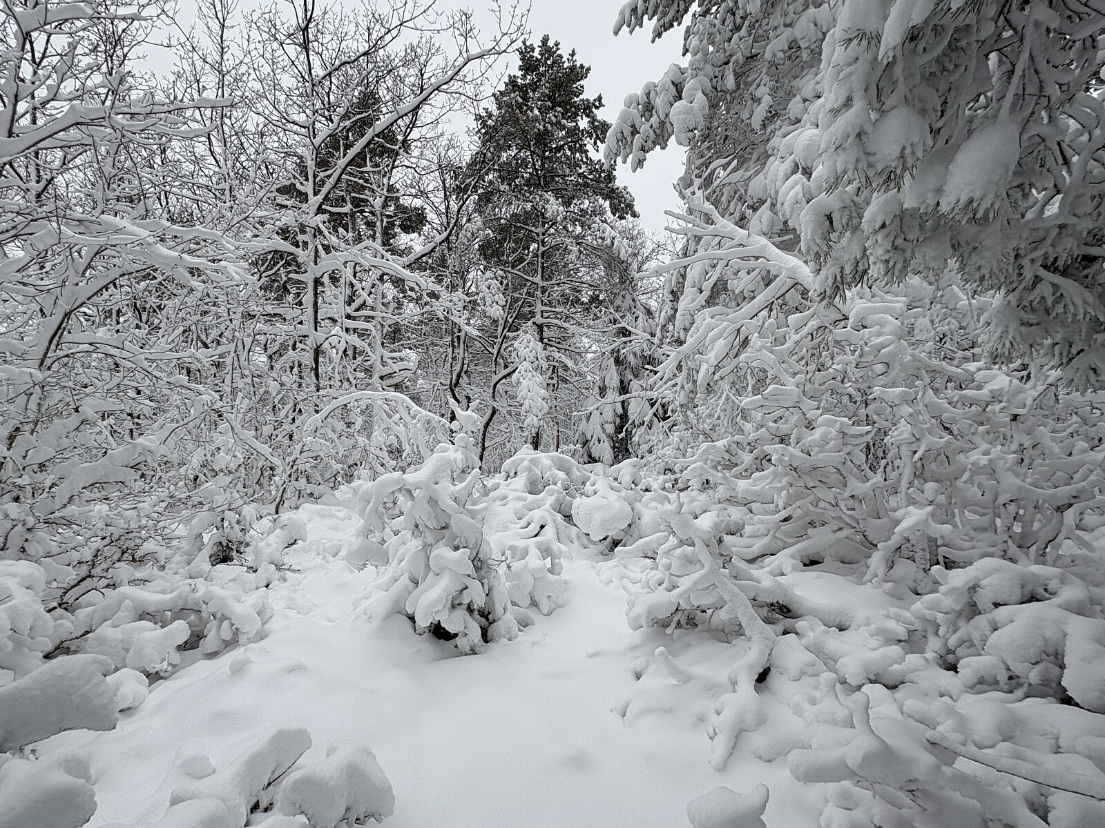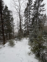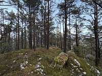Jeg parkerte i veikanten i den skarpe svingen øst for Foreknuten. Herfra fulgte jeg veien innover et lite stykke før jeg gikk bratt opp til toppen på blåmerket sti. Det var litt isete og noe guffent et par steder, men greit å gå så lenge det gikk oppover. Jeg visste at det gikk en annen rute ned i tillegg, og satset på at den var mindre bratt. Trigpunktmerke og krakk på toppen uten den store utsikten. Selvsagt litt utsikt her og der på vei opp og ned.