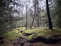 Jeg kom kjørende fra Stavanger retning Rennesøy og tok av første avkjøring etter Mastrafjordtunnelen. Herfra fortsatte jeg vestover til Hetland og parkerte på en liten p-plass her. Turen startet gjennom ei grind og deretter bratt opp på heia. Det blåste kraftig denne dagen og vinden fikk ordentlig tak på knausene. Vel oppe på høyden så jeg over til Skjena som var innhyllet i tett granskog. Jeg fant en liten åpning i skogen, og jammen var det en fin sti som førte meg nesten helt inn til toppunktet. Null utsikt herfra, men mesteparten av turen var helt super. Delvis T-merket sti fra p-plassen.