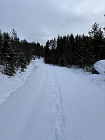 Jeg parkerte på turparkeringen på Skjatvet gård, pakket trugene på sekken og labbet av gårde innover langs veien. Målet var å plukke noen poster på Skijeger'n samt et besøk på Kukollen. Da jeg var rett sør for toppen måtte trugene på, de var nødvendige helt til jeg kom tilbake til veien igjen litt lenger inne mot Slordammen. Det ble en fin runde, om enn noe tung. Det er ganske sjeldent at jeg går såpass langt med truger.