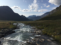 Fritt oversatt etter min favorittsang, søt som den nydeligste solskinnsmorgen... Og hjertet banker fortsatt for Gjendealpene! Jeg har alltid følt at Hurrungane er flottest, vakrest og råest, rekka fra Gjertvasstind til Storen på kloss hold fra nedre Midtmaradalsryggen med melis på toppene en skyfri høstdag, kjærestetopp og greier. Likevel, jeg har aldri klart å fri meg fra tanken, og det er like greit å offentliggjøre sannheten. Som østlending må jeg bare si at mitt hjerte ligger i Gjendealpene! Det er så mye barndomsminner i dette objektivt sett nest flotteste delområdet av vår kjæreste heim, og det fremkaller følelser jeg ikke får noe annet sted i Norges fjellverden. Denne drømmeturen fikk virkelig fram herlig nostalgi. Det var rett og >>>