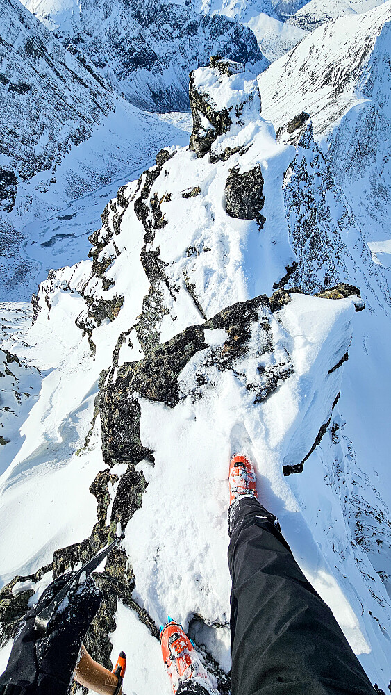 Artig travers, særlig over Litlhestene, noen luftige steder der. Elendig snø å gå i over eggen til Hesten med uendelig mange gjennomtråkk i gammel kantet snø uten bæring. Fin nedkjøring på slusj ned bratt sørrenne.