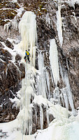 Etter tips så jeg og Alf for oss ei ny linje i Gjøra som vi gikk for. Isen var hard og tørr i første taulengde (WI3+). Lengre oppe ble isen bedre. Cruxlengden graderte vi til en sterk WI4 mens siste lengde var WI4 på våtere is.