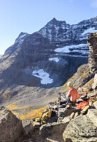 Utrolig fin septemberdag med krystallklar luft og sikt. Tidkrevende og tungt i snøen oppover fra bandet. En del nedfall fra toppen så måtte velge rute og plassering av standplasser med omhu. Meget krevende opp Heftyes, dårlig is så isøksa fant ikke feste, umulig å få håndtak med hender, utrolig kaldt og vått der.