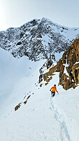 Tidseffektive rutevalg, ferdige med Store Memurutinden, Austre M, og Veotinden etter 6 timer. Kos opp til Veobreahesten. Litt mer sliten opp til Leirhøe! Fantastisk nedkjøring på pudder hele veien ned til Spiter!