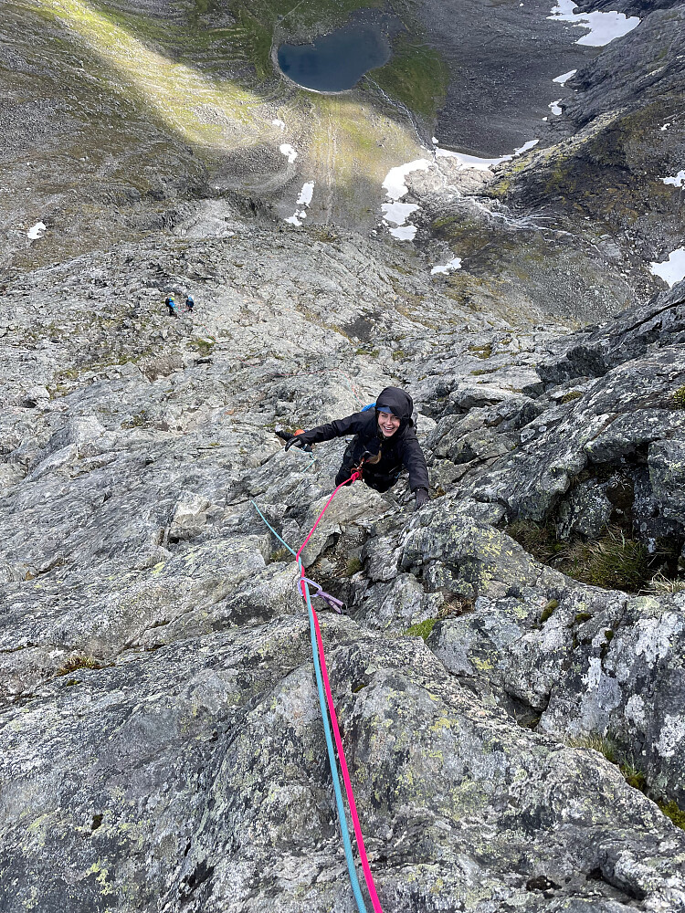Føringstur for Niklas Dyrhaug og samboeren Frida. Plan A var egentlig Søre Dyrhaugstinden, men pga dårlig vær i Jotunheimen dro vi til Romsdalen i stedet og klatret nordveggen på Romsdalshornet. Et godt valg!