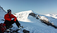 Kvitegga er en topp jeg har forsøkt meg på to ganger tidligere, men snudd begge gangene på grunn av at jeg var alene og usikker på skredfaren. I dag var det kanonvær og stabil snø, alt lå til rette for en vellykket bestigning av Sunnmørsalpenes høyeste fjell. Som de foregående dagene brukte jeg og Johan lang tid på morgenen før vi kom igang med turen. Ifølge værvarselet skulle det bli dårligere vær på Vestlandet de to neste dagene, så vi hadde bestemt oss for å dra tidlig til Hemsedal dagen etter. Om vi skulle få oss noe søvn neste natt innså jeg realitetene og spurte Johan om det var greit at vi delte oss og jeg sprang i forvegen opp til toppen. Johan slet uansett med kneet og var i grunn fornøyd med å bare rusle litt oppover Snødalen for så å kunne slappe litt av >>>