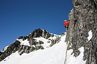 Jeg hadde tatt meg fri i ukedagene for å delta på et todagerskurs sammen med IFMGA Tindevegleder Nils Nielsen. Dette var noe jeg hadde planlagt en stund på forhånd og etter mye fram og tilbake endte det opp med at jeg og nilshermann (Nils Hermann Wiggen) ble deltakerne. Vi hadde leid Nils for å lære mer om i hovedsak skredvurdering og alpin klatring og forventningene ble så absolutt innfridd.