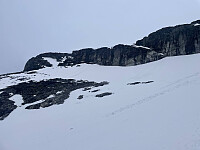 Opptakssamling klatring for kommende tindevegledere ved Norsk Fjellfagskole. Jeg var med som "sensor" for to deltakere (Vegard og Martin) som skulle klatre Jugoslavruta opp til andrerampa (fire taulengder, 5+) i stive støvler. Litt utsatt anmarsj langs gamle gelendertau. Den ene deltakeren måtte trekke seg ved innsteget på grunn av en vond skulder, så det ble kun meg en den andre deltakeren som fikk klatret. En del år siden jeg var her sist. Fortsatt veldig fin rute! Rappellerte ned en boltet rute like øst for Jugoslavruta.