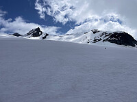 Føringstur for Terje fra sommerskisenteret til Spiterstulen der vi var innom flere 2000-metringer på veien. Brukte tau et par-tre korte taulengder opp og ned fra Ymelstinden. Rundet sørvestryggen til Storjuvtinden mot nordvest. Vær obs på skredterreng og litt bratt det siste stykket helt opp mot toppen. Labbet ned til Svellnosbrean via en snørenne fra Austre Storjuvtinden. Klarte å kjøre på ski helt ned til 1450 moh, men ganske råtten snø i nedre del.