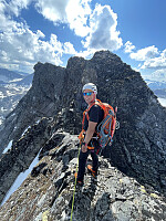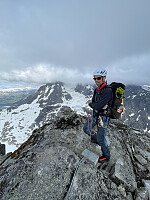 Føringstur for Gunnar over Semelholstindtraversen. Litt kronglete oppstigning mot Nørdre i nedre del. Kanskje bedre å holde lenger mot øst og runde det bratteste? Morsom travers med flere eksponerte punkter. Litt køddent å finne egnet standplass etter siste taulengde før toppen, men måtte forlenge fra sikringer over kanten mot sør. Sikksakket oss en del på breen ned igjen for å holde oss på snø og slippe stegjern på is.
