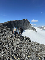 Føringstur for Terje til alle 2000-metringene på Maradalsryggen. Terje gikk i forkant opp til Bandet og jeg kom halsende etter på 1t 30min fra Skagastølen. Gikk direkte opp og ned på Nørdre fra Slingsbybreen. Hadde god hjelp av sporene mine fra et par dager i forkant.