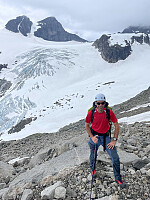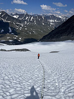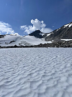 Føringstur for Terje til alle 2000-metringene på Maradalsryggen. Terje gikk i forkant opp til Bandet og jeg kom halsende etter på 1t 30min fra Skagastølen. Gikk direkte opp og ned på Nørdre fra Slingsbybreen. Hadde god hjelp av sporene mine fra et par dager i forkant.