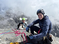 Føringstur for Tommy og Øystein over Larstindene og Snøhettatraversen. Holdt et jevnt bra tempo med ambisjoner om å rekke siste bussen ut igjen. Klarte det med litt over en halvtimes margin. Klarte å kile fast tauet på første rappell ned fra Larstinden. Vær obs der dersom man har skjøteknute. Måtte klatre opp igjen og fikse det. Stort sett fine forhold.