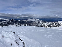 Føringstur for Terje. Gikk med skiene på sekken fra Visdalen og opp mot Skautflye. Byttet til ski fra litt innpå flatene (der vi forlot stien iflg. tracket) og satte kursen sørover mot Veobreahesten. Målet var kun østtoppen på Veobreahesten siden Terje manglet denne. Vi traverserte oss østover i sørflanken i håp om at dette skulle være mest effektivt, men snøen var såpass hard og isete så det ble tausikring og taulengder hele veien fram og tilbake fra toppen. Dette tok litt mer tid enn planlagt, men vi gjennomført trygt og sikkert.