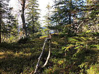 Flott turorienteringstur på sørøstre delen av Holleia, sørøst for Aklangen. Tur-O traseen vår passerte like forbi det høyeste punktet på åsen vi gikk i. Gikk derfor bortom toppunktet på Raudkasthøgda i og med det var registrert som et Peakbook-element. Åpen fin furuskog i terrenget rundt høyden, men ingen utsikt. La en liten stein på toppen av høyden for å markere toppunktet. Merk at NGO-bolten til det tidligere trig.punktet, som også er avmerket på M 1:50 000 - kartet ligger på høyden 100 meter lenger sydøst. Dette punktet er litt lavere (en hjelpekurve på o-kartet). Det betyr at nåla på Peakbook-elementet er plassert på rett høyde. Nina var med på turen.