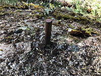 Dugnadsjobb for Ringerike O-lag, etter oppdrag fra Kartverket. På grunn av dette har vi nøkkel til alle bomveger i kommunen. Kjørte derfor bomvegen innover fra Bjonevika oppover forbi Åsebråtån. Parkerte i vegkryss 1 1/2 km sydøst for Tannfjell. Var ikke mulig å kjøre inn den korte veistubben mot en velteplass, da vegen var begynt å gro igjen. Gikk vegen inn til velteplassen og rett på åsen. Når vi kom opp den første bratta åpnet terrenget seg med spredt furuskog, myrer og bergrabber. Kom etter hvert inn på en sti som vi fulgte til toppen. Oppe på Tannfjell var det ei bu med ved og ei postkasse med bok. I tidligere tider har det vært brannvakttårn her oppe på Tannfjellet. Bua har kanskje tilhørt brannvakta? Vi fant NGO - bolten og tre festejern til trig. punktet som ble reist >>>