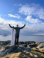 Rogalandsekspedisjon Signalhaugen Eime Kjerrberget Tinghaug Brusaknuden Etter at vi kom ned ifrå Signalhaugen sendte vi ei melding til Edvin på Kvitsøy for å høyre om han hadde tid til å skysse oss ut til Eime neste dag. Han var dessverre opptatt neste dag, men han hadde tid i dag. Vi avtalte derfor at vi skulle komme ut med neste ferge og møtast på fergekaia. For å slå ihjel litt tid fram til fergeavgangen køyrde vi til Randaberg og kjøpte oss ein kopp kaffe på ein bensinstasjon. Eime er den lågaste kommunetoppen i Noreg med sine 28 moh, men er ein av dei med mest logistiske utfordringar. Toppen ligg på ei øy utanfor Kvitsøy, så her trengst det båtskyss. Øya er stengt for ilandstigning frå 15.4 til 1.8 på grunn av hekkande fugl. I tillegg må ein ta ferge for å komme seg til ut til Kvitsøy. Flaks for oss at Edvin kunne >>>