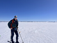 Første del av turen gjekk over Finsevatnet, før løypa steig gradvis mot breplatået.