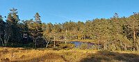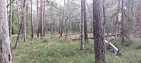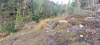 Kjørte inn Slåttavegen. Veien innover er skiltet med Privat vei så jeg snudd og parkerte i veikanten før det som er Kongstveit p-lomme. Der er det lagt plen helt ut til veien og bør nok ikke parkeres på. Syklet innover forbi gården og bommen rett etter. Syklet 1,5 kilometer inn til veikryss og tok til høyre. Etter noen meter satte jeg sykkel i veikanten og gikk på noe som kanskje har vært en gammel traktorvei. Ble raskt ganske bløtt i dalen oppover så jeg tok til høyre opp lia og fulgte dyretråkk og busket retning toppen. Kom opp mot toppen litt sør for toppunktet. Ganske flat toppområde. Skogtopp ingen utsikt. Litt utsikt mot Herøya litt lenger nordpå. Tilbake til sykkel og bil gikk jeg i terrenget litt nord for sporet opp. Hvor du går hen i dette terrenget spiller ingen >>>