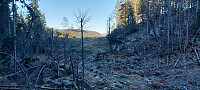 Etter optikerbesøk på Stathelle var det ennå noen timer med lys så kursen ble satt mot Høydalen i Skien. Kjørte Høydalsvegen til endes og parkerte på en stor parkering/snuplass. Herfra syklet jeg inn Mjåvannsvegen. Denne veien er ikke lov å kjøre uten egen tillatelse. Etter 550 meter fortsatte jeg inn på Rørtjernvegen. Denne er stengt med bom. Etter 550 meter satte jeg syklen i veikanten og fulgte en eldre traktorvei opp til høyre. Her var det fortsatt noe trefall etter stormen Amy. Traktorveien ble etter hvert mer som sti og regne. Fulgte traktorvei opp til en myr. Passerte denne og dreide øst mot toppunktet. Fra myra og opp er det busking i lyng og mose. På toppunktet ligger rester av ett gammelt trig.punkt. Skogtopp uten utsikt. Retur samme vei.