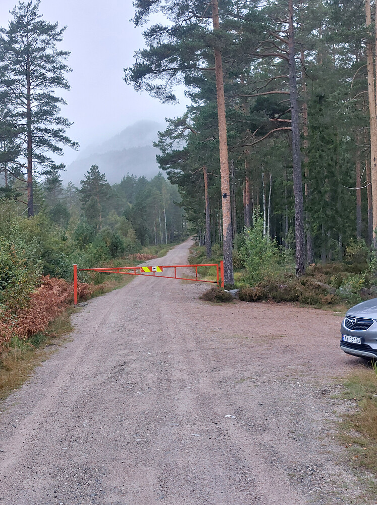 Kom fra Treungen og fulgte 41 sørover. Rett etter brua går bomveien Juvavegen inn til høyre. Her et parkeringsplass til 5-6 biler før bommen. Bommen er kameraovervåket.