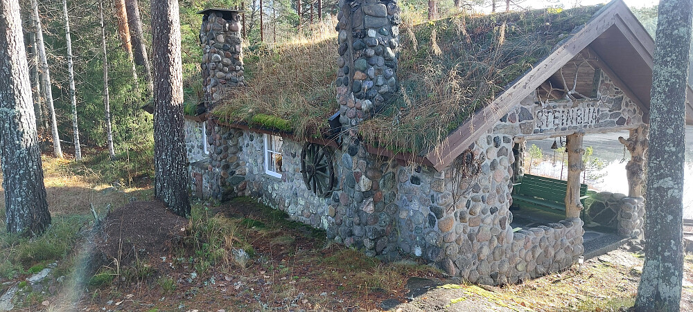Kjørte Høydalsvegen og fulgte skilt til Eikelund. Dette er en kommunal veg som ender i en stor snuplass/parkering ved en nedlagt gård rett før bommen på Fjellsetervegen. Parkerte her og syklet forbi bommen (som var åpen) og fulgte fin grusvei innover. Passerte en koselig steinhytte ved Håvardstjenn. Hytta tilhører gården Fjell, som er grunneier i området.