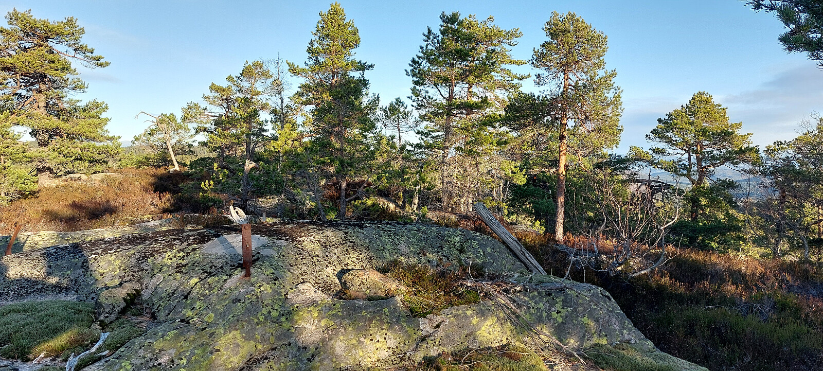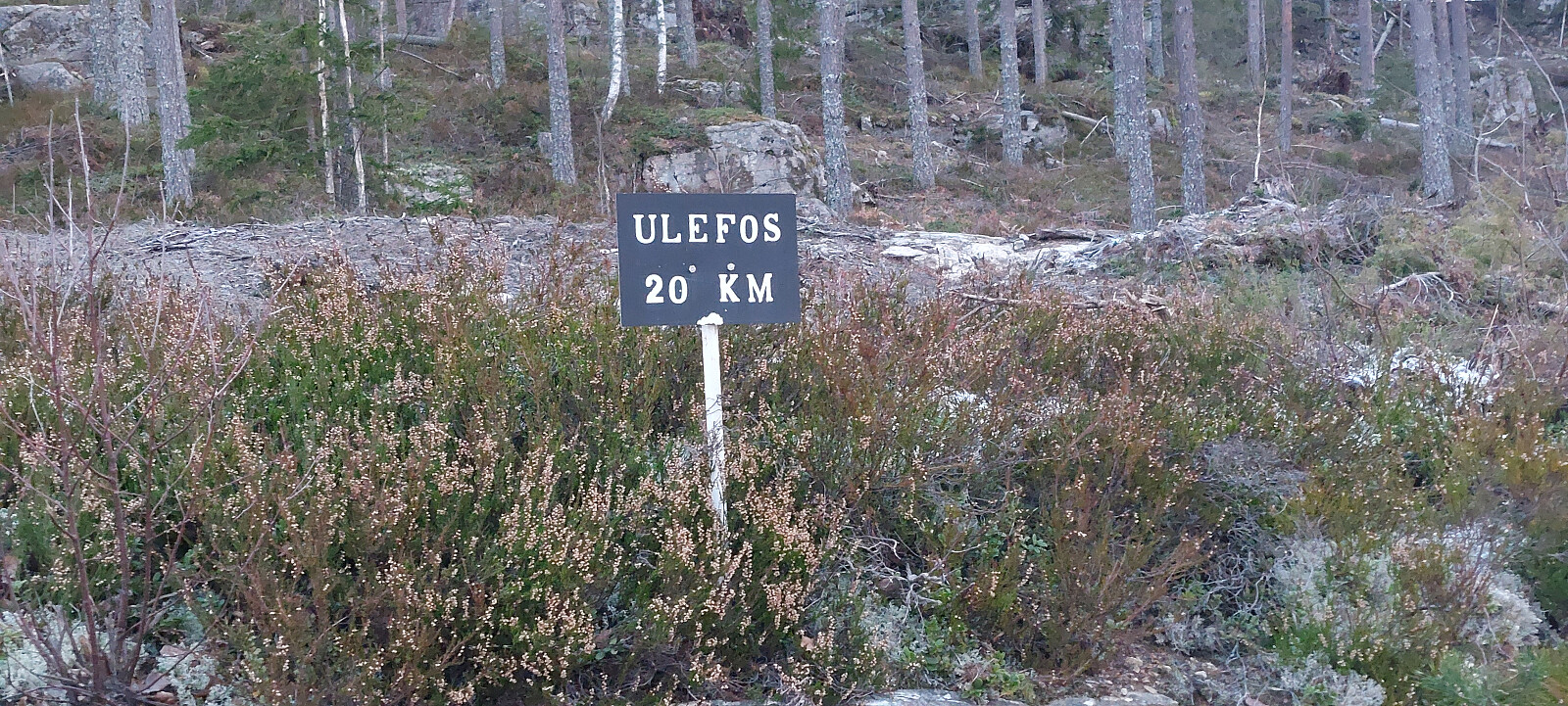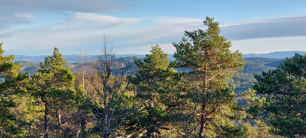 Når jeg passerte Middagskollen på vei opp så jeg en gammel traktorslepe som gikk retning toppen. Syklet derfor tilbake dit. Fulgte traktorslepa slagt oppover, ble etter hvert sti og det siste stykket til toppen ble det lyngbusking. Toppunkt markert med en liten varde og bolter etter ett trig.merke. Fin utsikt sørover mot Høydalen. Retur samme vei. Tur-retur fra veien ble 2,6 kilometer. 147 høydemeter.