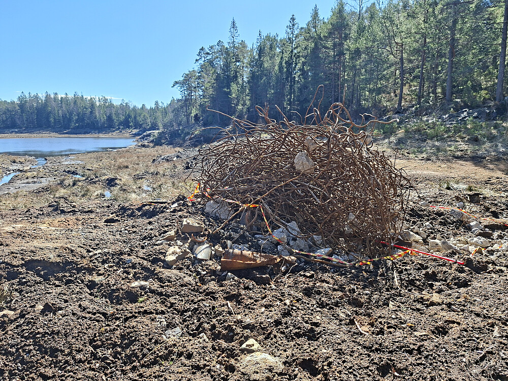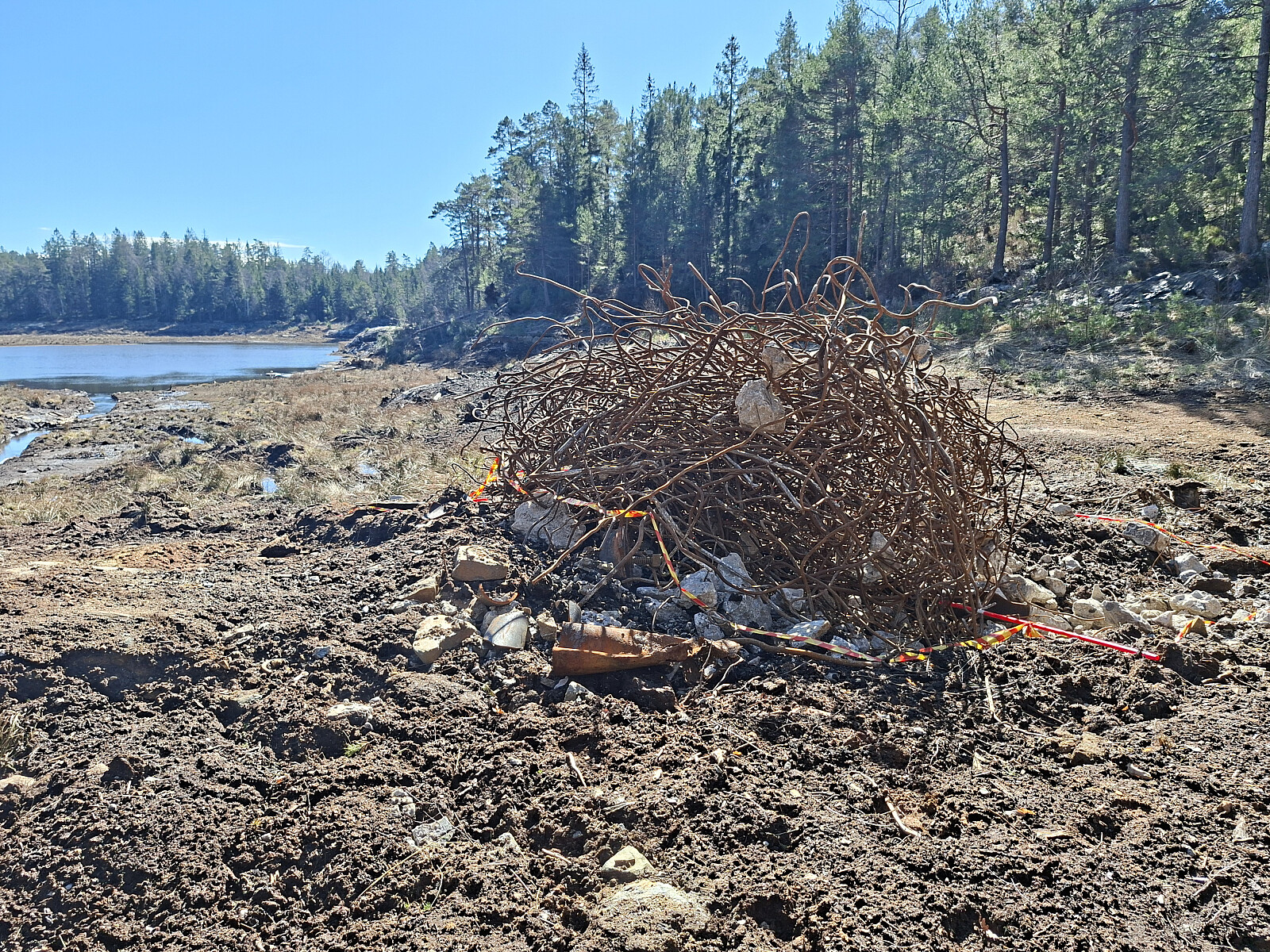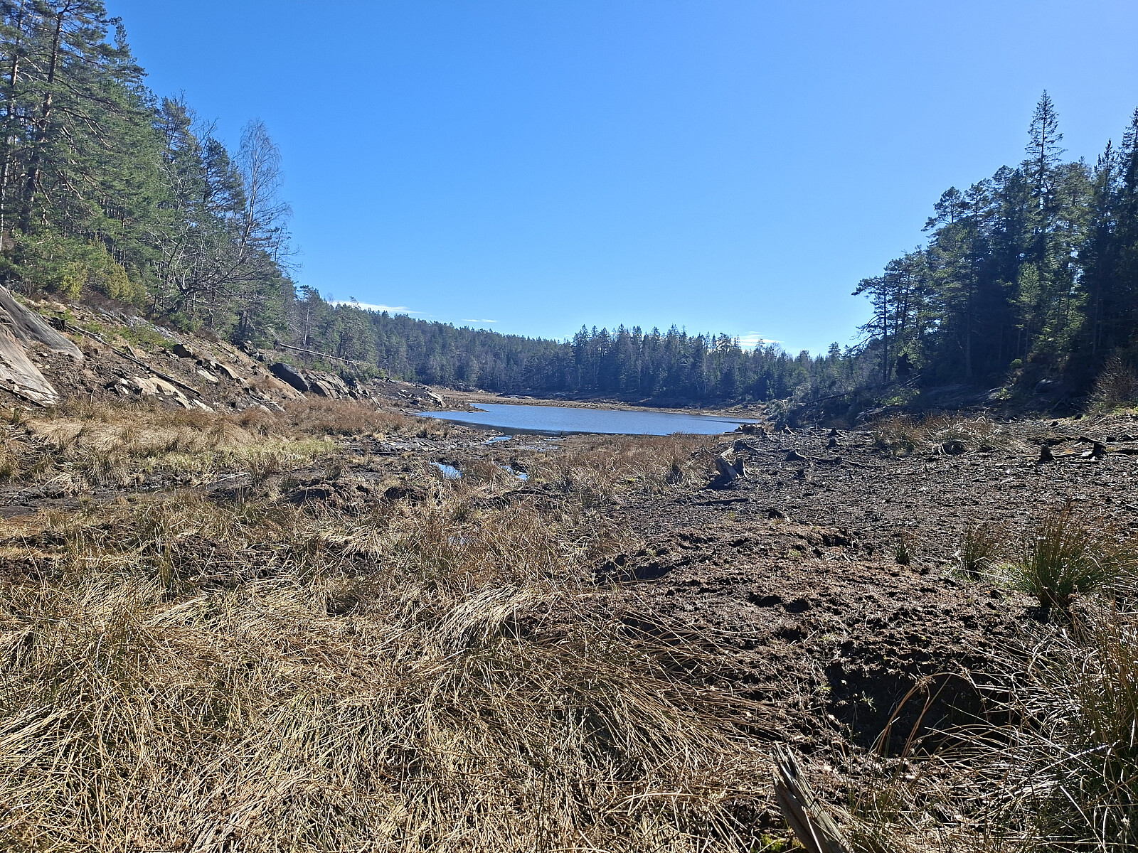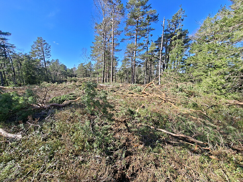Kjørte Fv416 mot Risør og tok til høyre mot Laget. Til venstre rett etter krysset ligger turparkeringen. Her er det satt opp infoskilt med kart over stier i området. Ved parkeringen er det rester etter en tysk bunkers fra 2.verdenskrig. Parkerte og fulgte skilting mot Gartetjenn. Veien følger Kvernhusbekken oppover til stidele. Tok her til venstre mot Skardalen og Myrtjenna. Etter 300 meter forlot vi stien og gikk i terrenget mot toppen. Selve toppområdet er ganske flatt. Det er foretatt hogst her i vinter så det er litt kronglete å gå fram til der toppunktet skal være. Ingen markert topp og ingen utsikt. Tilbake holdt vi oss utenfor hogstområdet og gikk stort sett i lyng ned til vi møtte stien igjen. Fortsatte mot Gartetjenndammen. Dammen er har ikke vært i bruk siden 1980 tallet og blir nå revet av Risør kommune. Dammen ble etablert i 1924 for å bringe vann til Risør Tremassefabrikk på Krana i Risør.Om Risør Tremassefabrikk