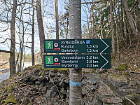 Kjørte Fv416 mot Risør og tok til høyre mot Laget. Til venstre rett etter krysset ligger turparkeringen. Her er det satt opp infoskilt med kart over stier i området. Ved parkeringen er det rester etter en tysk bunkers fra 2.verdenskrig. Parkerte og fulgte skilting mot Gartetjenn. Veien følger Kvernhusbekken oppover til stidele. Tok her til venstre mot Skardalen og Myrtjenna. Etter 300 meter forlot vi stien og gikk i terrenget mot toppen. Selve toppområdet er ganske flatt. Det er foretatt hogst her i vinter så det er litt kronglete å gå fram til der toppunktet skal være. Ingen markert topp og ingen utsikt. Tilbake holdt vi oss utenfor hogstområdet og gikk stort sett i lyng ned til vi møtte stien igjen. Fortsatte mot Gartetjenndammen. Dammen er har ikke vært i bruk siden 1980 tallet >>>