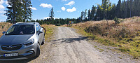 Lauvhøgda, kommunetopp Vestre Toten. Kom på RV4 sørfra og ved Reinsvoll og tok av mot Midtåsen og inn på Skjellerudvegen. Passerte bom stasjonen. Koster 50.- med personbil. Kameraregistrering av Youpark. Fulgte grusveien oppover. Bommen som er tegnet i kartet ved Lauvhøgda parkering er nok ikke aktiv lenger. Den stod åpen og så ut til å ha gjordt det lenge. Heller ingen skilt om lukking. Av den grunn kjørte jeg helt opp til tårnet på toppen. Snuplass og plass til flere biler.