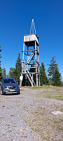 Lauvhøgda, kommunetopp Vestre Toten. Kom på RV4 sørfra og ved Reinsvoll og tok av mot Midtåsen og inn på Skjellerudvegen. Passerte bom stasjonen. Koster 50.- med personbil. Kameraregistrering av Youpark. Fulgte grusveien oppover. Bommen som er tegnet i kartet ved Lauvhøgda parkering er nok ikke aktiv lenger. Den stod åpen og så ut til å ha gjordt det lenge. Heller ingen skilt om lukking. Av den grunn kjørte jeg helt opp til tårnet på toppen. Snuplass og plass til flere biler.