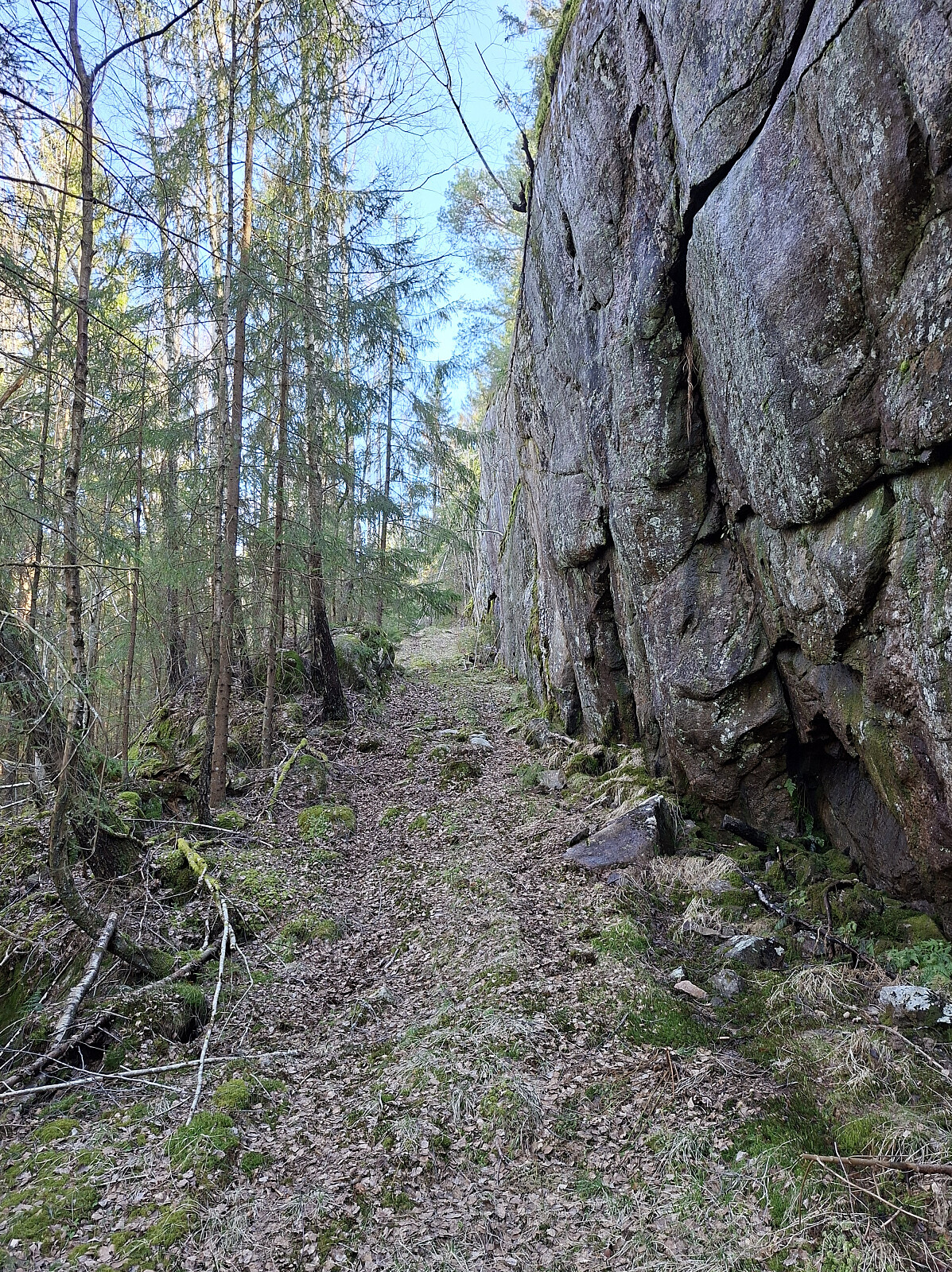 Kom fra Skien på Rv36 og tok til venstre mot Stavdal. Kjørte til første kryss og parkerte i veikanten her. Gikk bratt bakke opp mot gården og videre inn til siste hus. Ingen parkeringsmuligheter langs veien. Fulgte bløt traktorvei til venstre for huset og langs åkerkanten. Fulgte åkerkanten på venstre side til det dukket opp en lite brukt sti oppover i skogen. Fulgte stien så godt det lot seg gjøre. Fulgte vel en rygg oppover til ett bløtt område, dreide her nordover og fant en grei oppgang til den ryggen jeg fulgte videre til toppen.