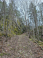 Som sist parkerte jeg innerst i Barlandskilen og syklet bomveien til stistart på toppen av bakken. Her er skiltet til Bytekollen (også kalt Bøttekollen). Fin og tørr skogsti. Høydemeter er tatt på sykkel så det er en behagelig sti ut til Bytekollen. Der det henger tau på høyre side går stien opp til toppen.