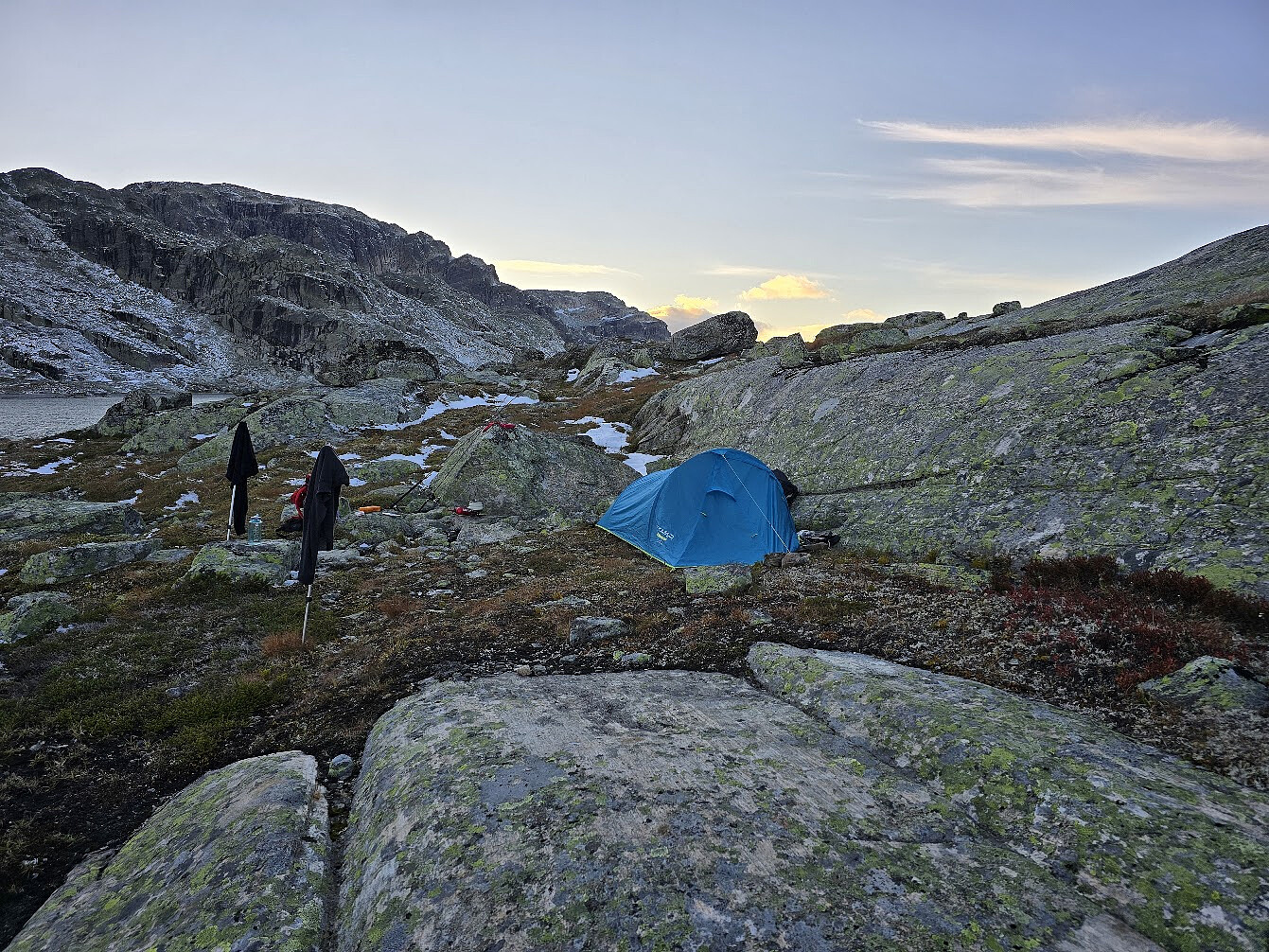 Leie av hytte gjennom jobben gir OK priser og ved å leie over noen dager så har jeg fleks til å se an været for evnt å ta noen netter i telt i samme periode – uten at jeg føler at jeg kaster penger ut av vinduet. Gjorde dette i sommer og samme denne gangen. Leiet fra søndag 21.9 tom søndag 28.9 og det skulle være noen fine værdager midt i perioden.