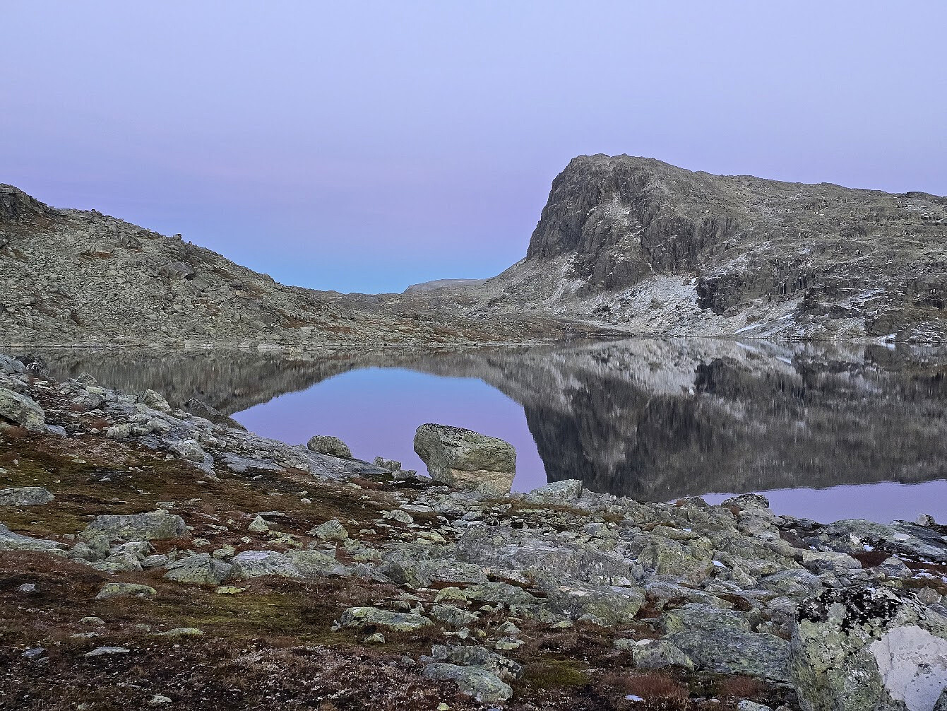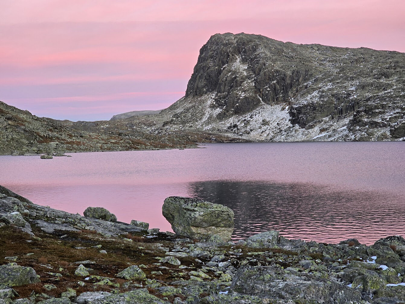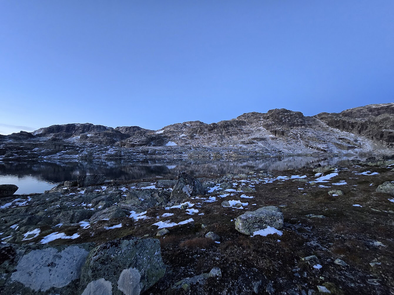 Området er fantastisk vakkert og jeg skal tilbake. Vil nok også prøve å gå fra Raggesteindalen, som skal være superflott. Det er ganske heftig tur å gå inn til vannet – så om jeg noen ganger får besøkt flere av toppene rundt, vil det nok være mest aktuelt på sommeren – siden dagene er mye lengre. Jeg kjente litt på at dagen var litt kort. Både i forhold til lys – men like mye i forhold til kulden.