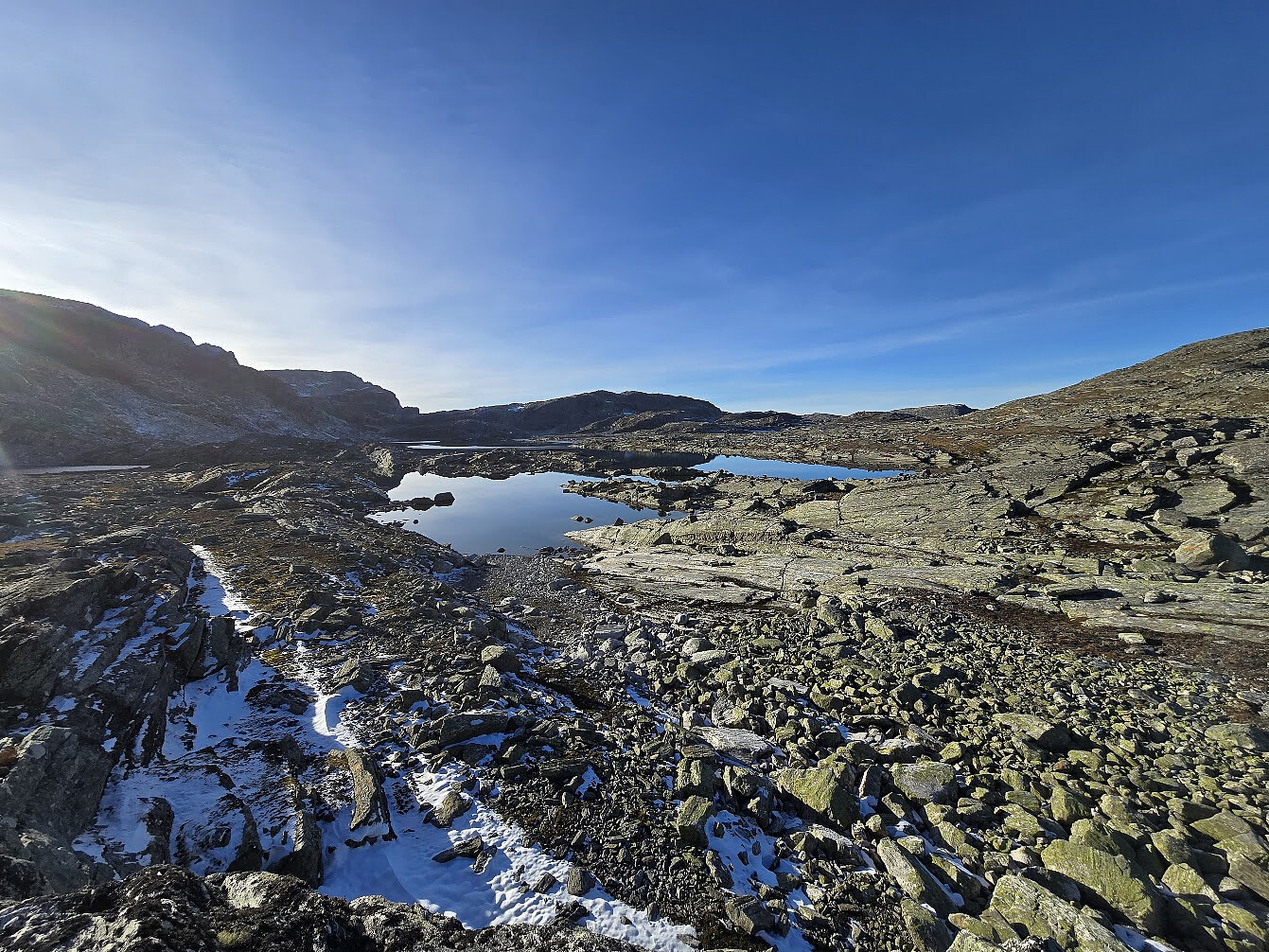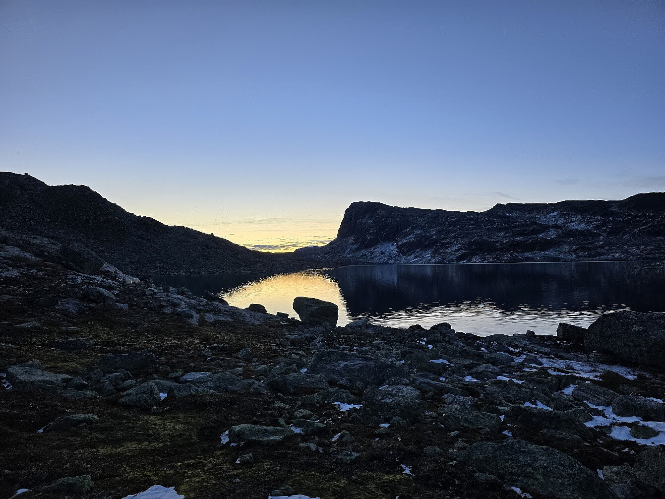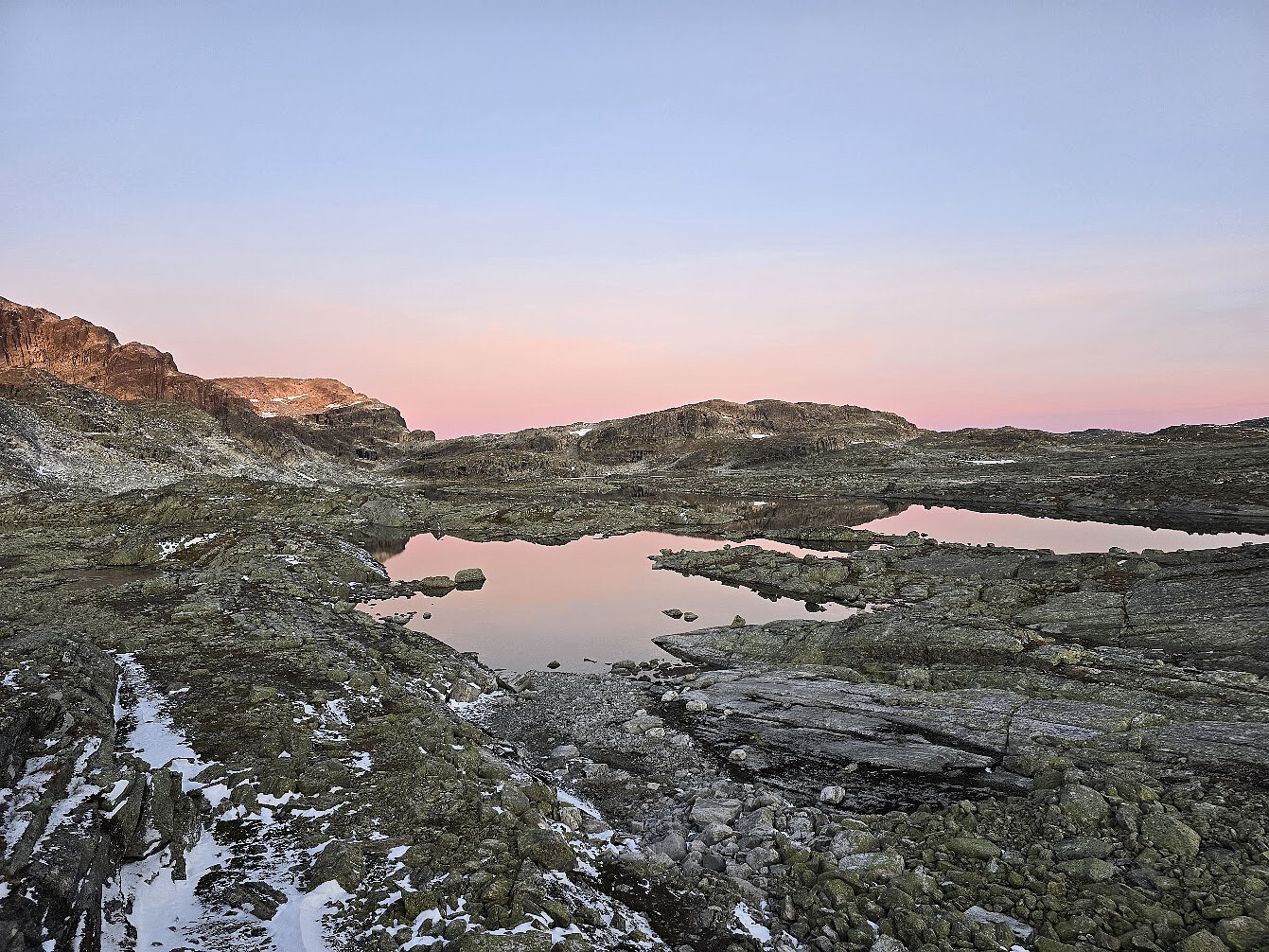 Området er fantastisk vakkert og jeg skal tilbake. Vil nok også prøve å gå fra Raggesteindalen, som skal være superflott. Det er ganske heftig tur å gå inn til vannet – så om jeg noen ganger får besøkt flere av toppene rundt, vil det nok være mest aktuelt på sommeren – siden dagene er mye lengre. Jeg kjente litt på at dagen var litt kort. Både i forhold til lys – men like mye i forhold til kulden.