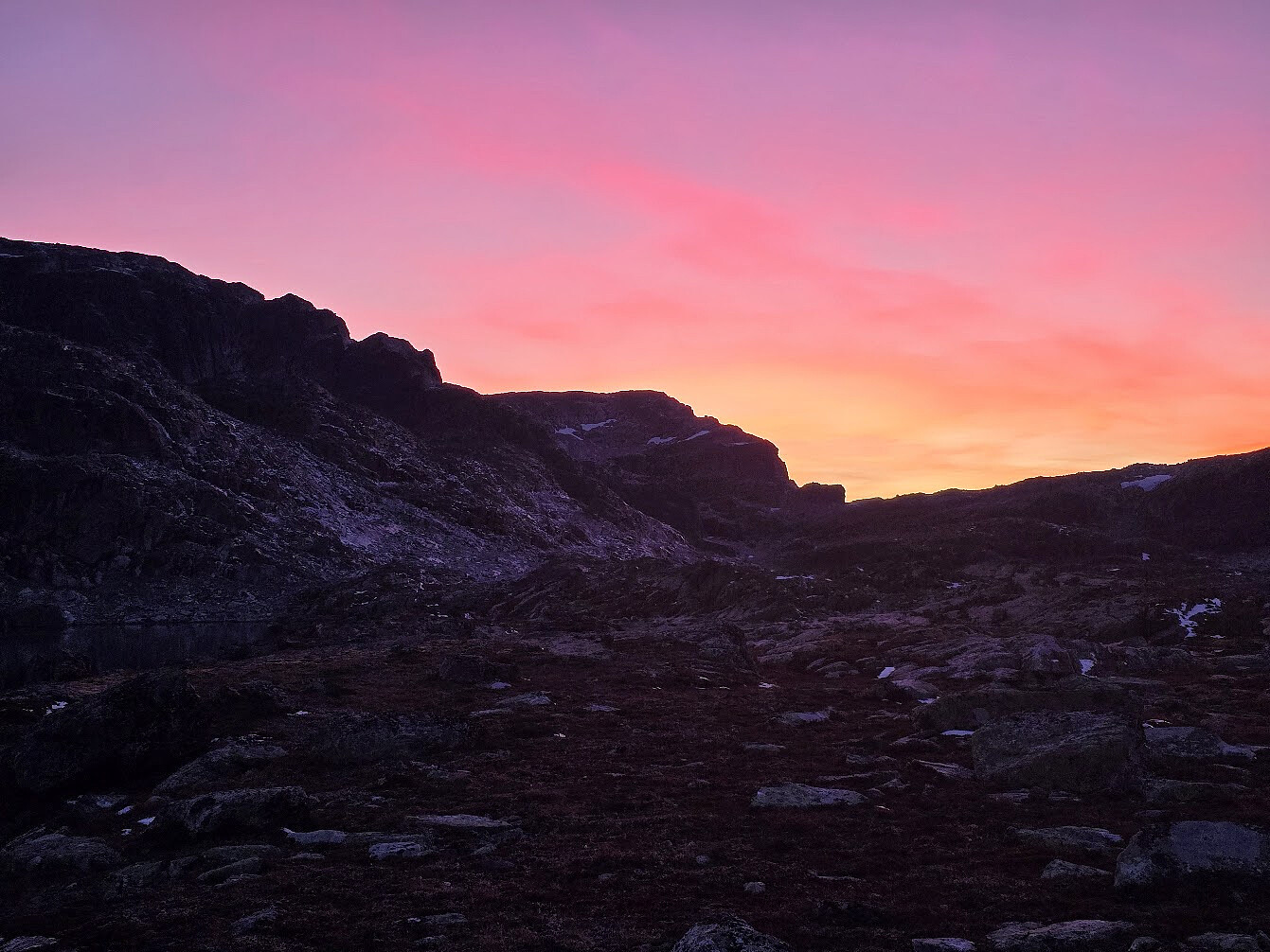 Soloppgang mot Ljøtebotnberget den siste dagen