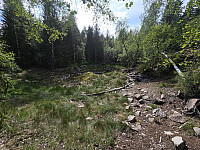 Kronglete skog og kjerrr. Masse mygg, masse maur - ingen stier og ikke noe som var verdt turen... Kom ca halveis til snaufjellet og det var mer enn nok.