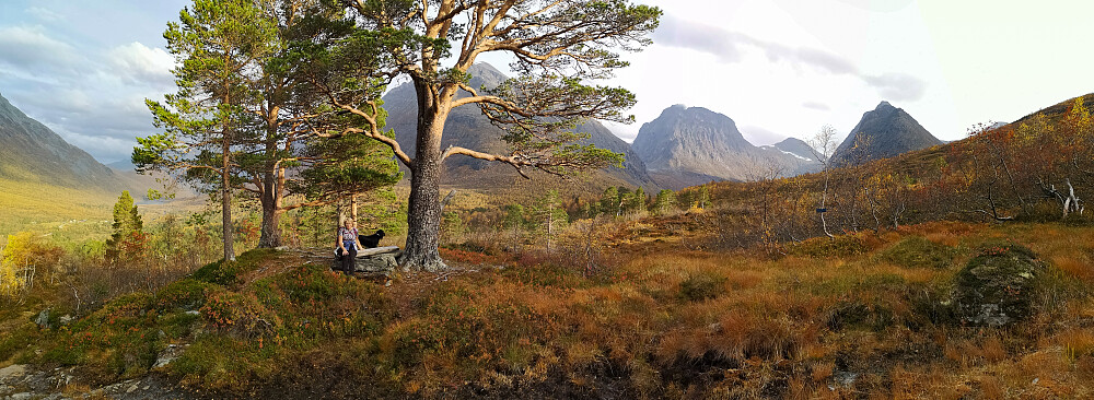 En super og enkel fjelltur nær Innfjorden. Tur med kona og Embla. Litt vind, men også tider med nær vindstille. Merkelig disig østover. Skal visst ha noe med en skogbrann langt østfra. Fargene er nå på hell, men fortsatt vakkert. Med oktober kommer høstvinden og løvfall. Vi gikk en annen vei ned og gikk innom en av hyttene som alltid står åpen her i fjellene "For fattig og rik" Bra tiltak. Traff noen trivelige folk på turen og ved hytta. Den ene karen kjente til Peakbook og var i gang med sin 2000m samling.